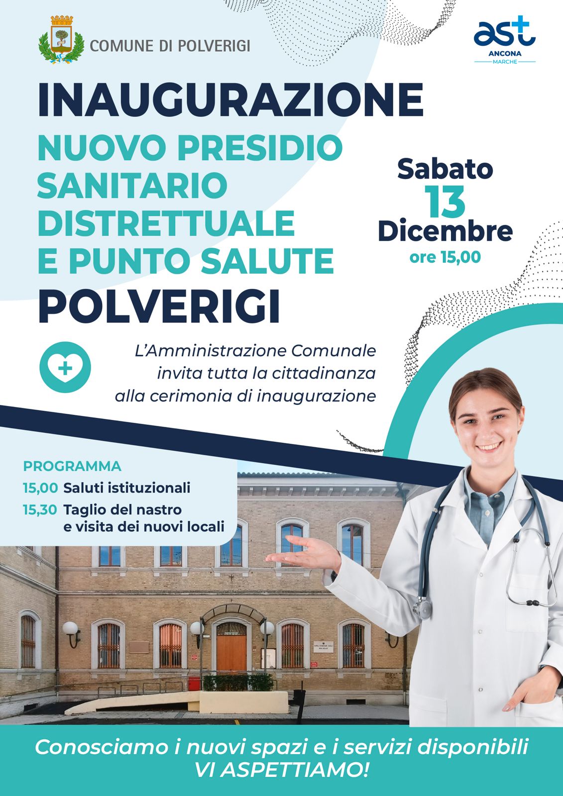 Sabato 13 dicembre, alle ore 15.00, si svolgerà cerimonia ufficiale di inaugurazione del nuovo Presidio Sanitario Distrettuale e Punto Salute di Polverigi, alla presenza delle istituzioni e della cittadinanza.