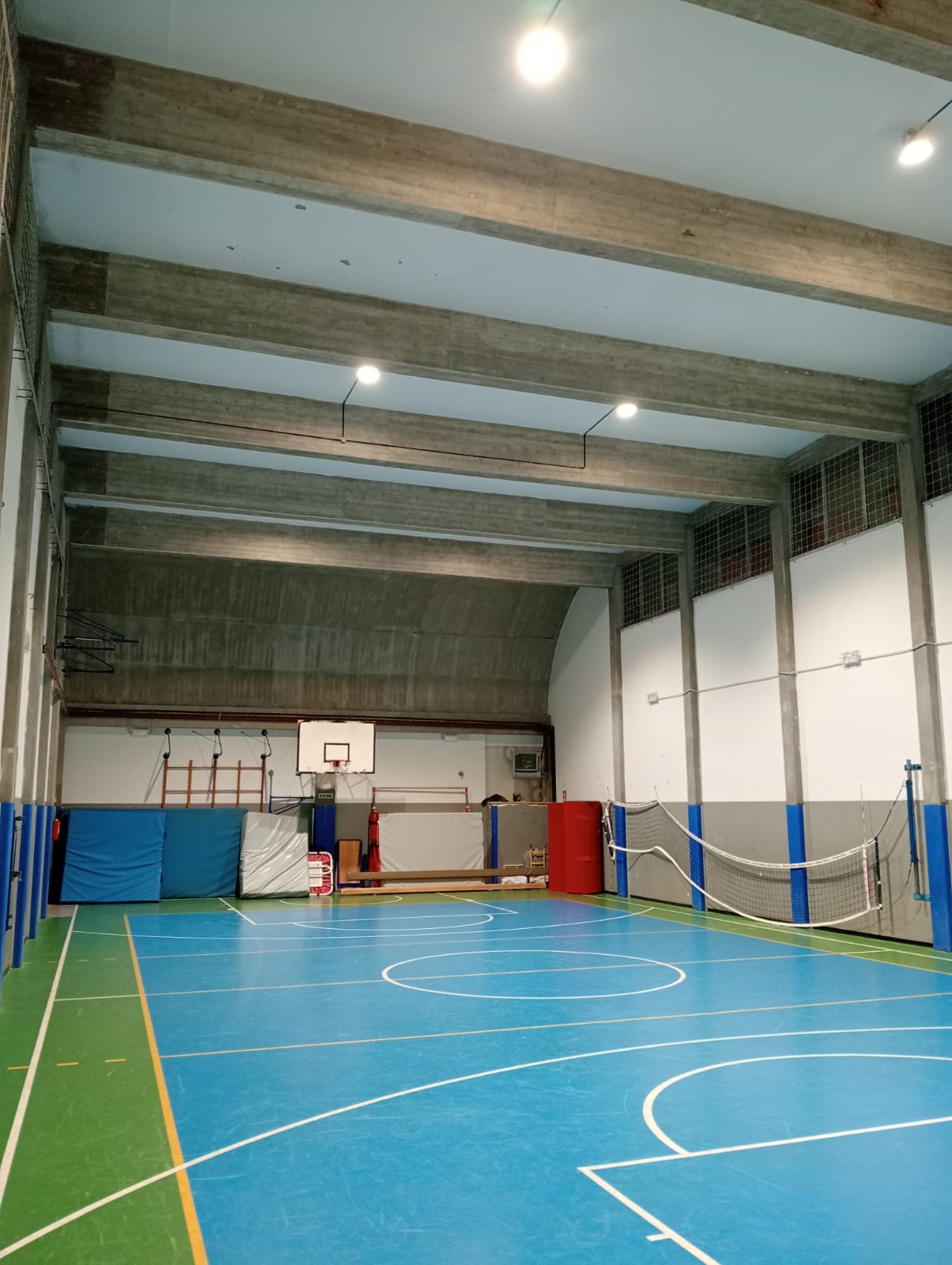 Sono stati sostituiti i proiettori di illuminazione delle torri faro del campo sportivo in erba e della palestra della scuola media con nuove lampade a LED ad alta efficienza.